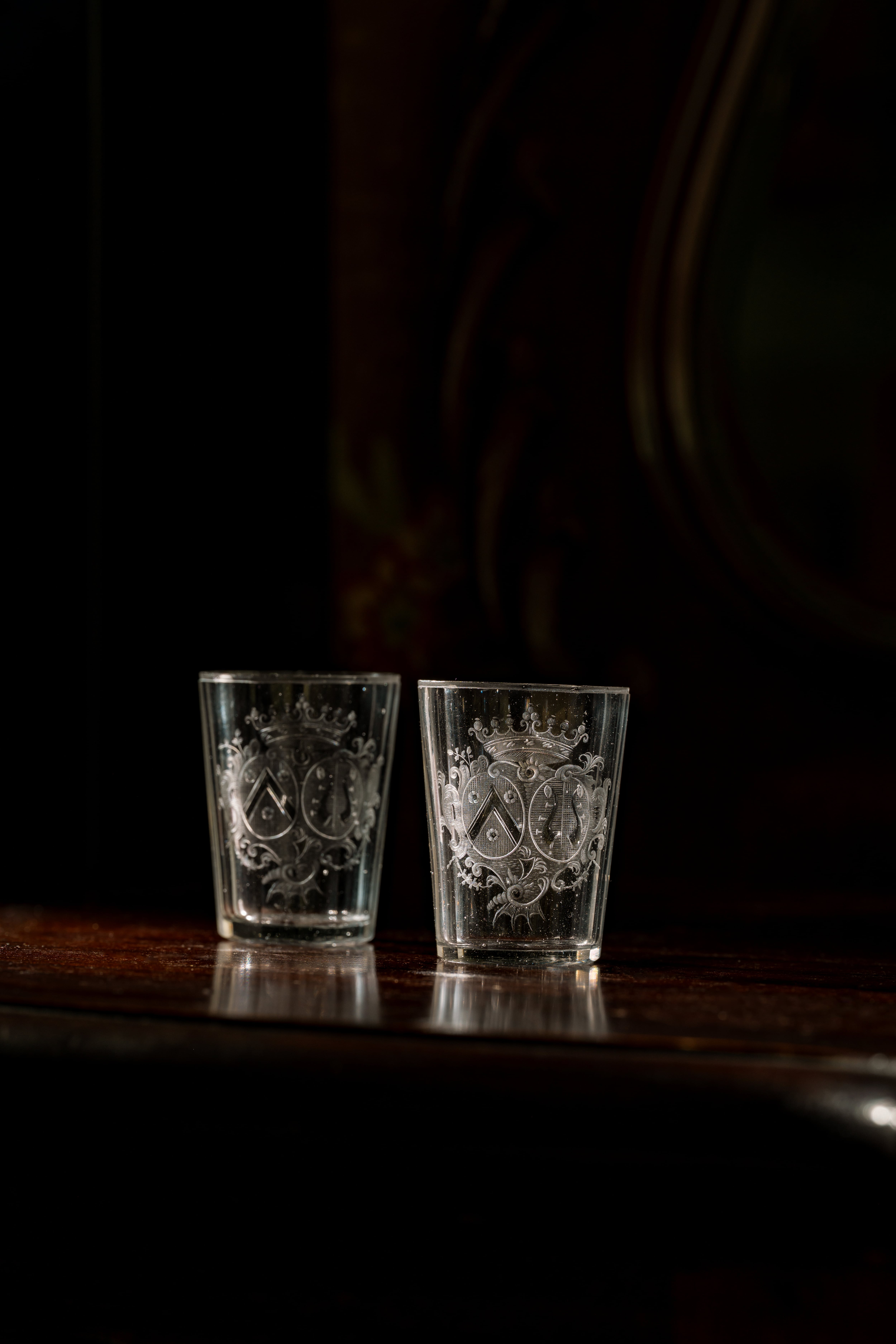8世紀 紋章文エングレーヴィング・グラス ペア
