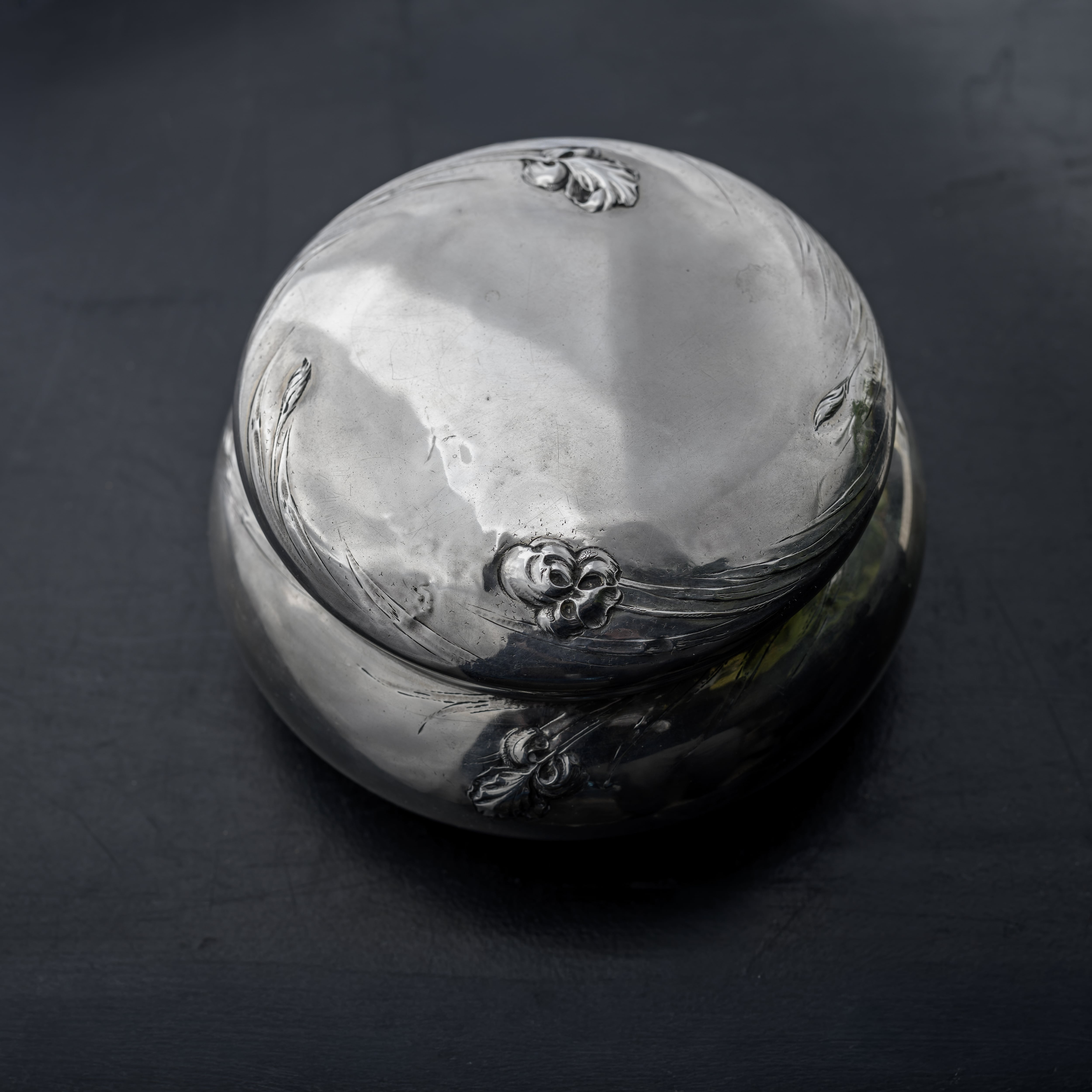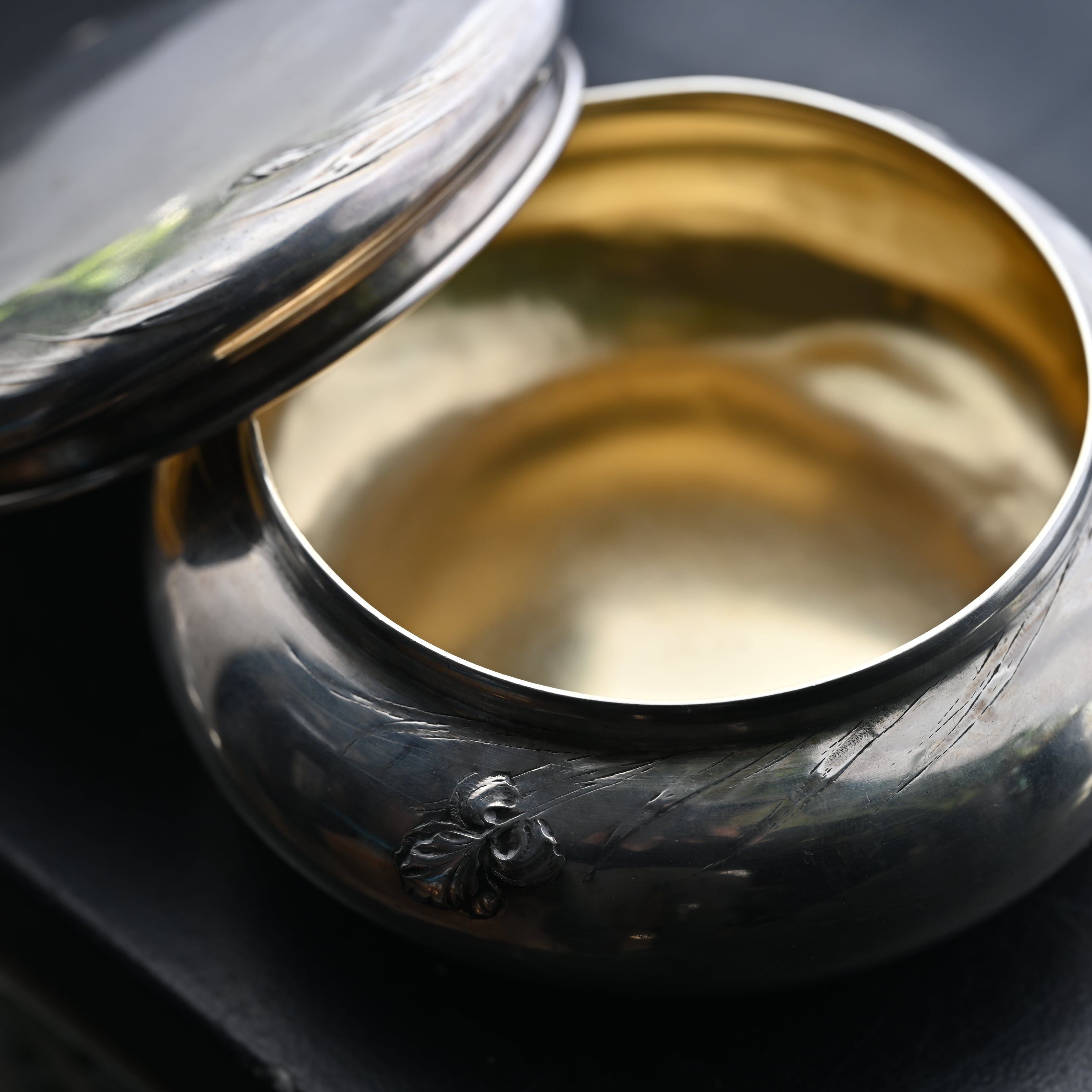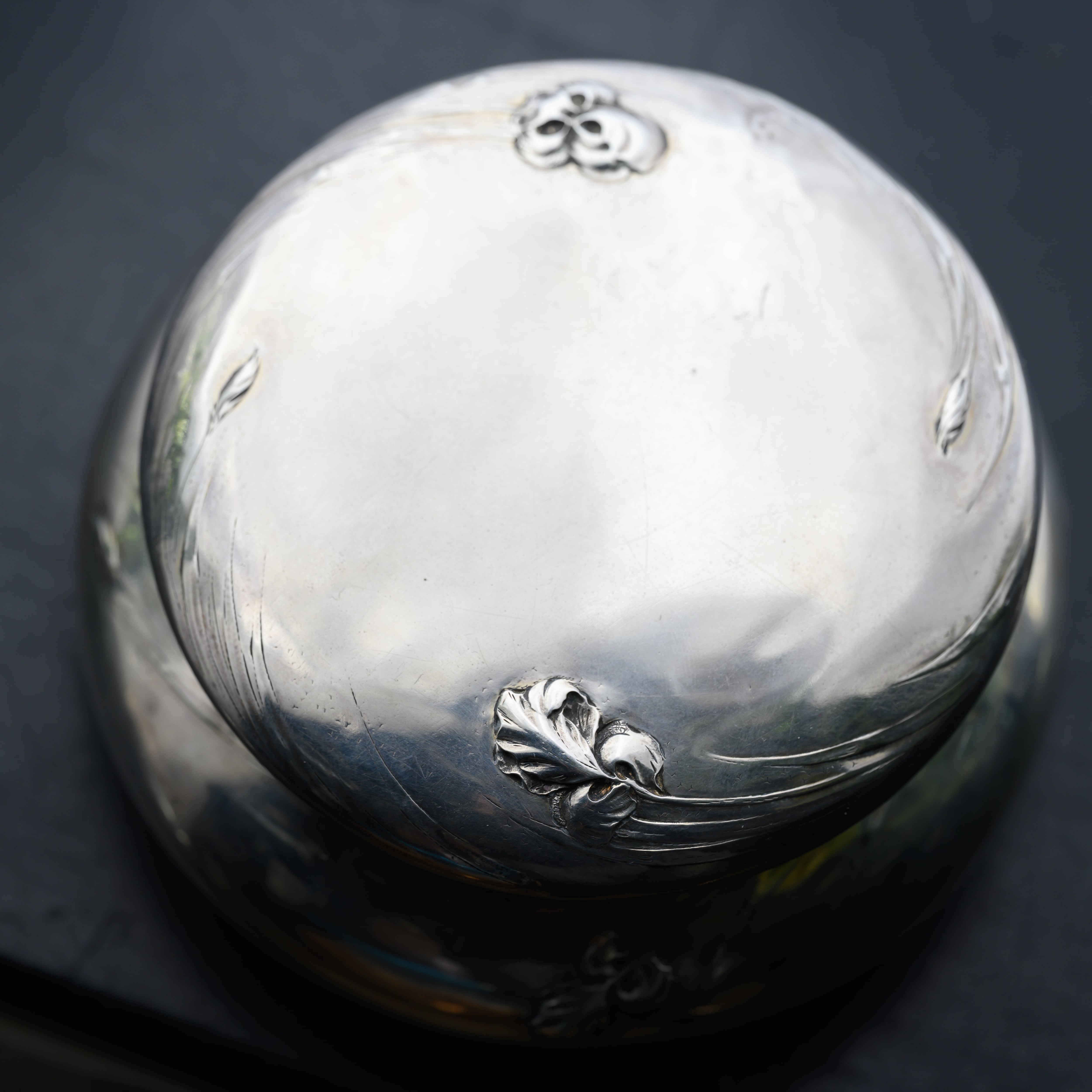 アイリス(アヤメ)をモチーフにアール・ヌーヴォーの影響を受けたデザインの大振りなボンボニエール。